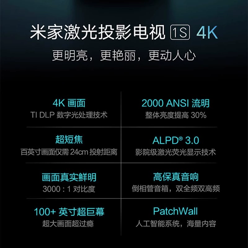 Xiaomi Mi Home Laser Projector 1S Home 4K Ultra Short Focus 100 Inch Laser Tv Ultra Hd Home Theater Wireless Mobile Notebook Screen Projection Bedroom Living Room Projector Overseas 120 Inch